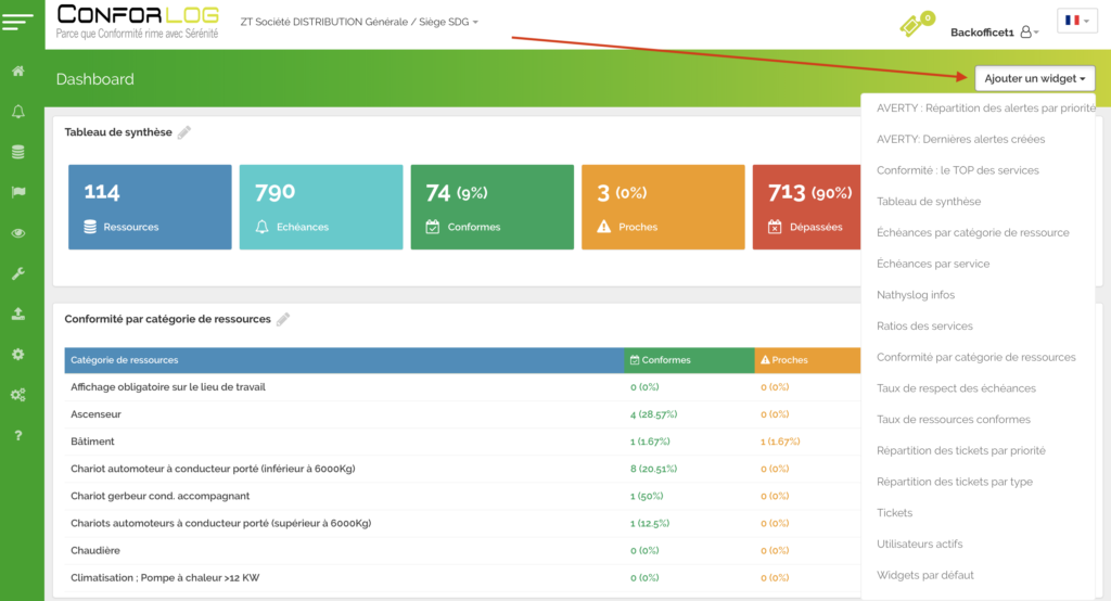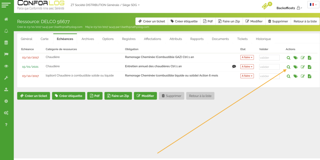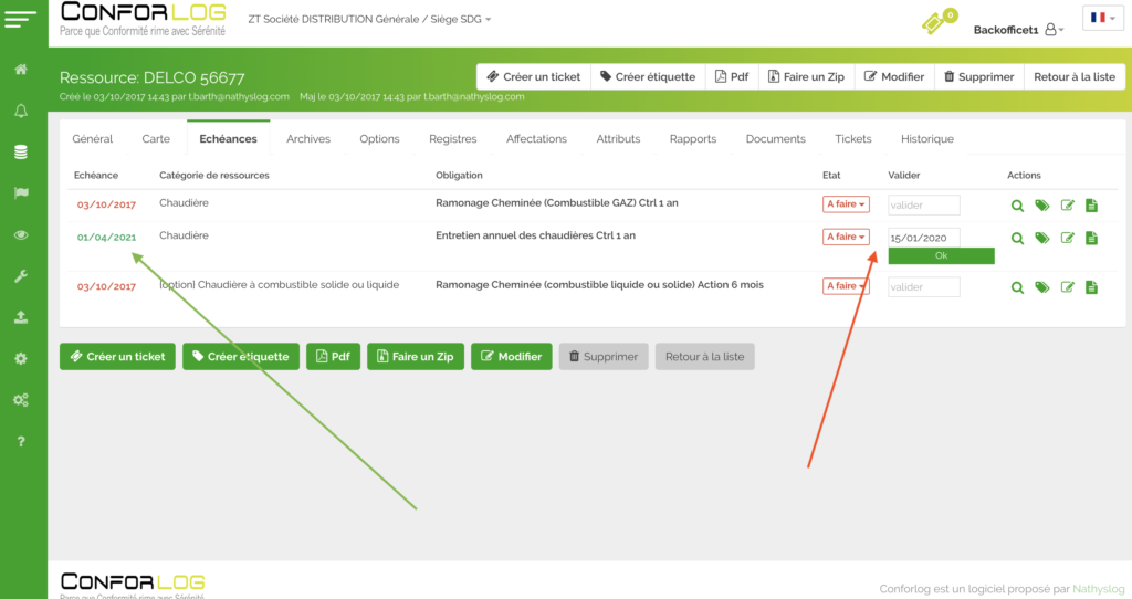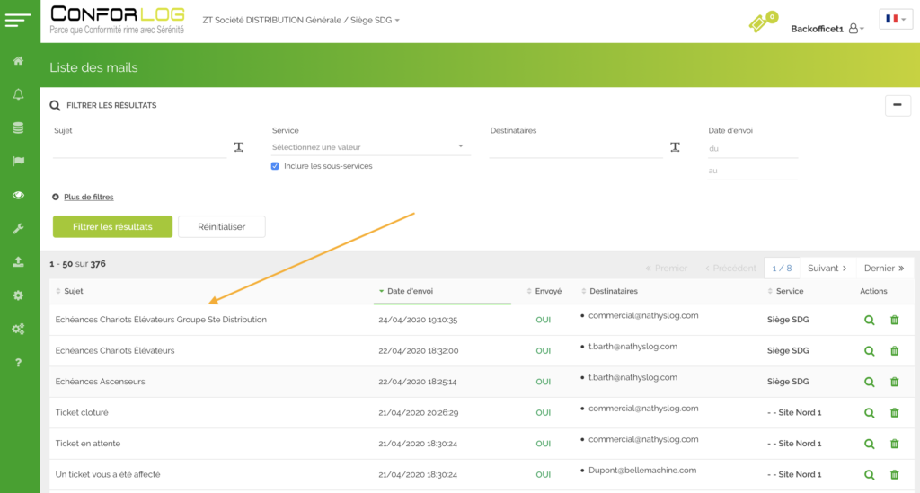 Définition : CONFORLOG permet de créer et d’expédier des alertes mails pour toutes échéances proches ou échues. il est possible de créer de multiples alertes filtrées par service, catégories de ressources, obligations etc.. La périodicité et les destinataires sont également paramètrables.