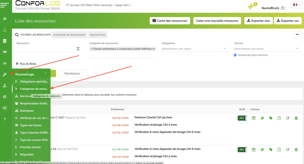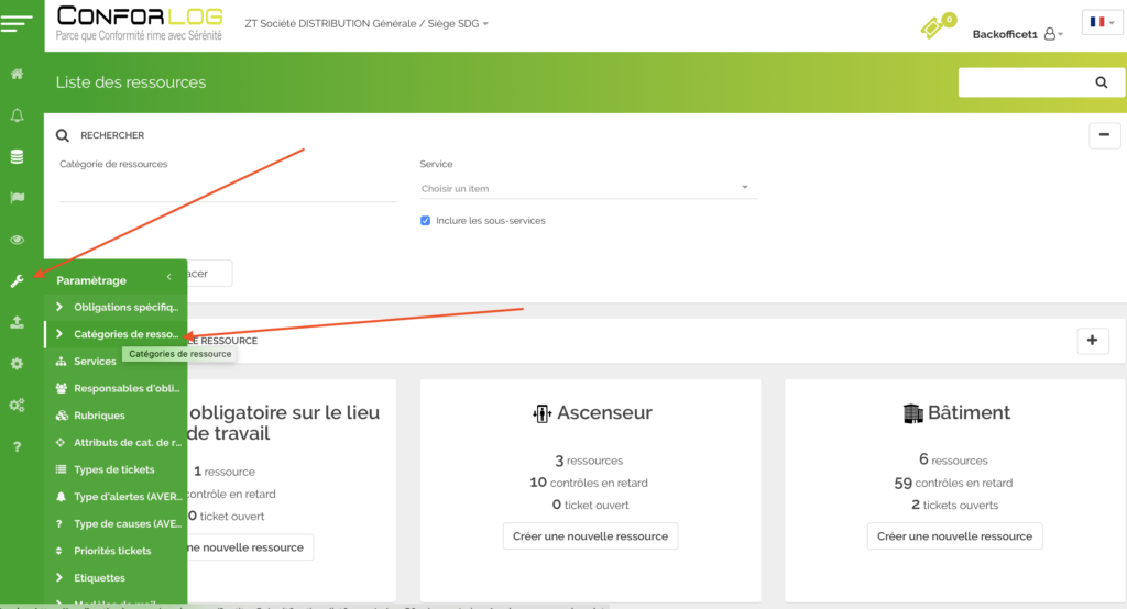 Définition : Une Catégorie de ressources est une famille qui regroupe toutes les ressources de même nature. Il est possible pour le client de créer ses propres Catégories de ressources, il s’agira alors d’y relier les contrôles nécessaires.