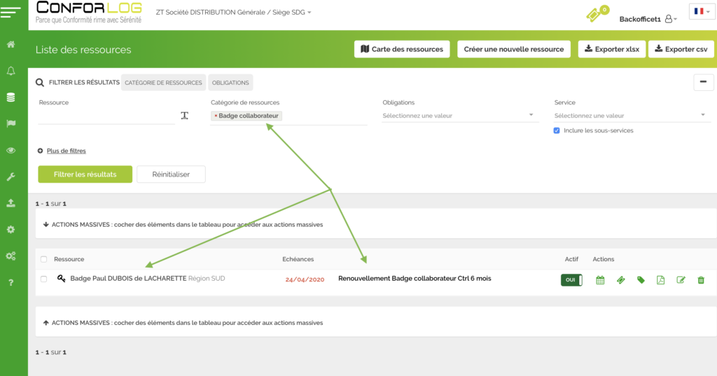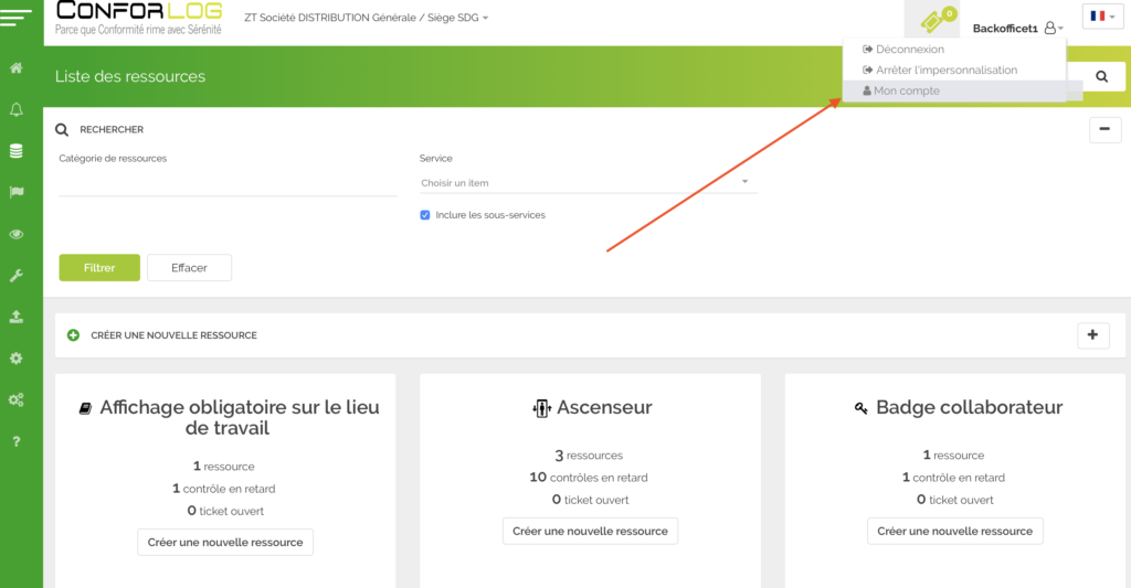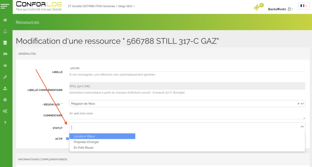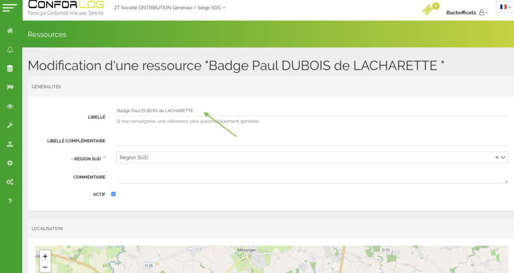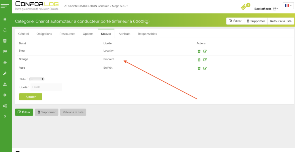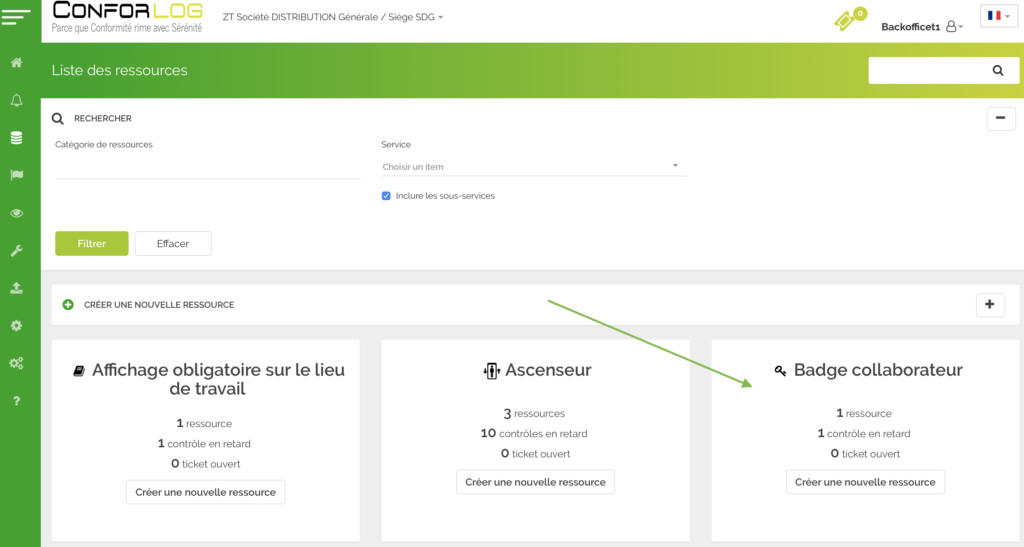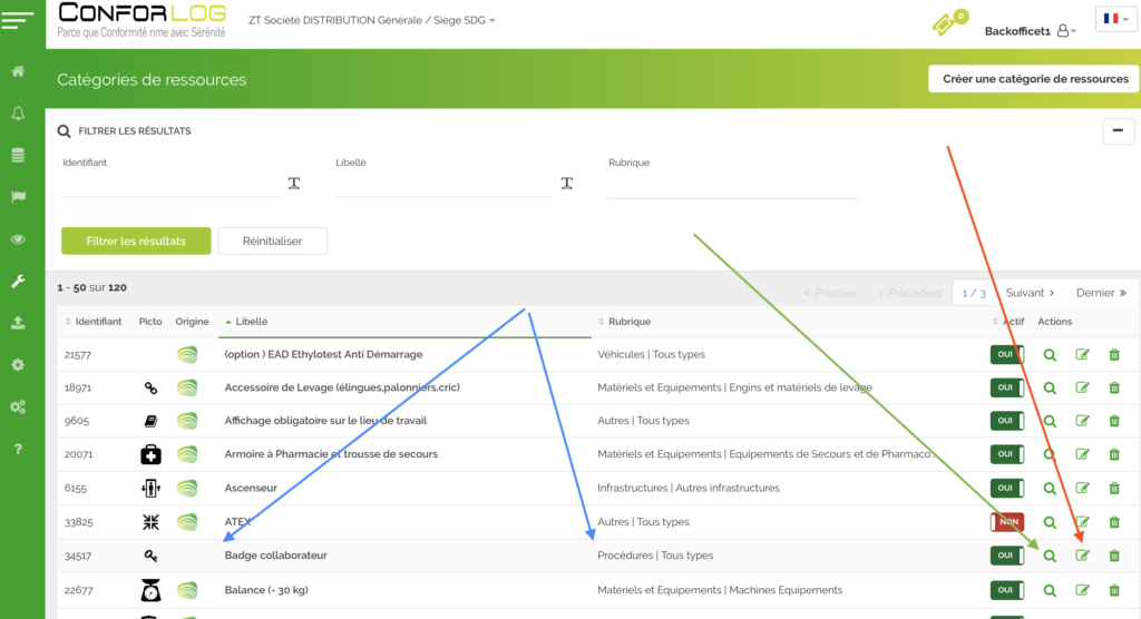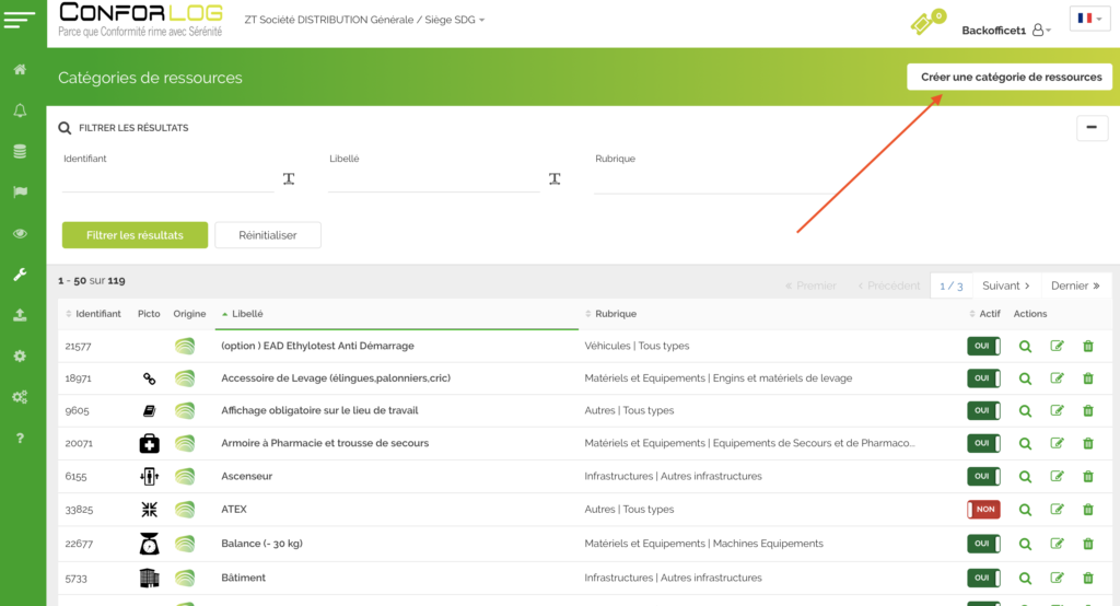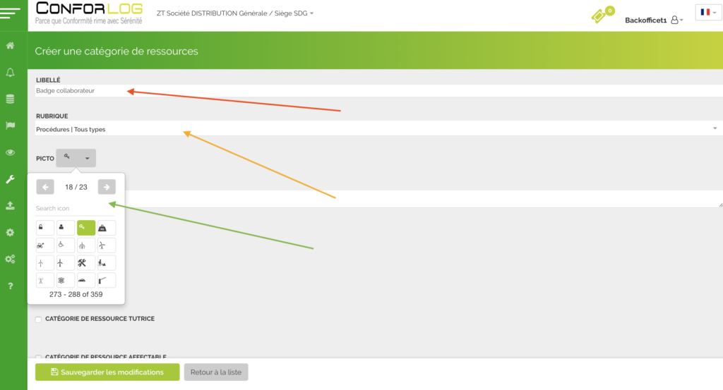 Ps : derrière l’icône vous ne trouvez pas le logo CONFORLOG puisque seuls les Catégories de ressources Génériques l’ont
