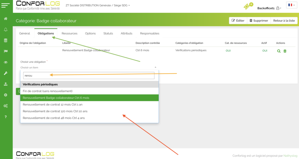 Facultatif : Flèche ROUGE => cette sélection limite la requête aux contrôles affectés au responsable d’obligations (voir Pourquoi créer un responsable d’obligations ? )