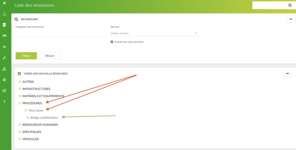 Filtrez la catégorie de ressources recherchée Flèche ROUGE