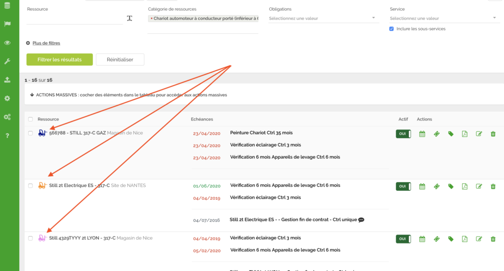 L’ objectif : donner une couleur à l’icône de la catégorie de ressources en fonction des critères souhaités, puis pouvoir filtrer ces critères.