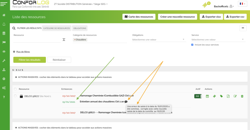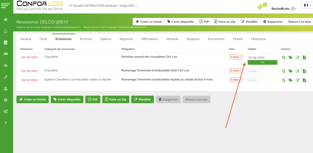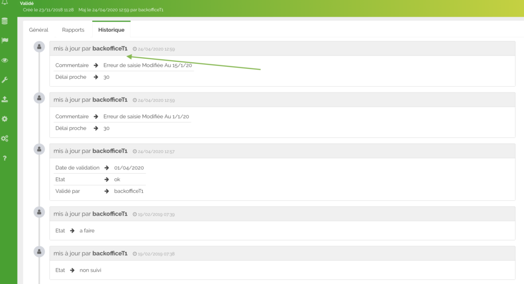 * Nouveau : cet état permet de lister tous les contrôles créés par le client => VALIDATIONS d’ACTION = pas de récurrence mais le logiciel enregistre toutes les dates des actions et l’état obtenu listeles dates des dernières interventions