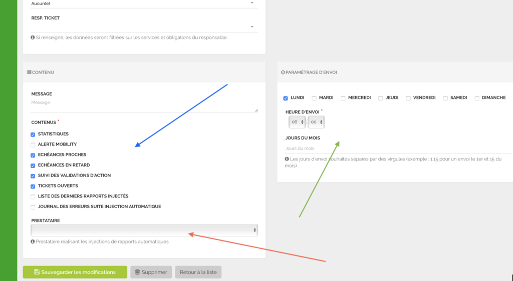 Prestataire : Si vous cochez => Journal des erreurs suite injection auto, il est nécessaire de choisir le prestataire concerné Flèche ROUGE