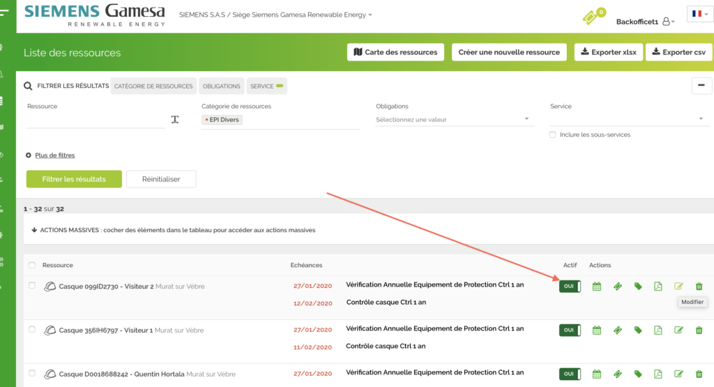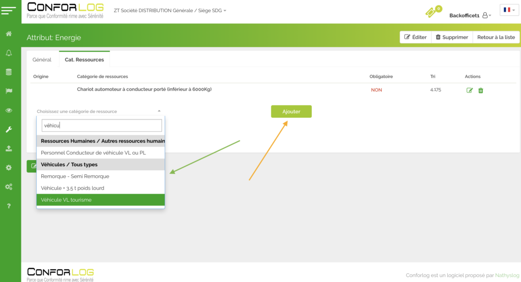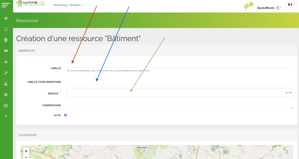Affectez le service qui correspond ( déroulez la liste proposée) Flèche VERTE
