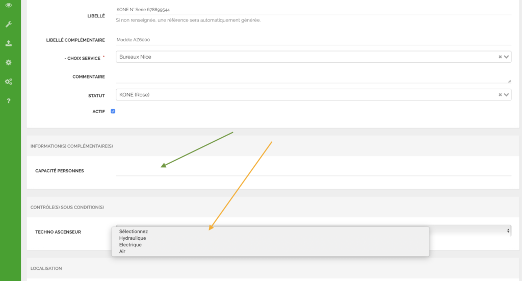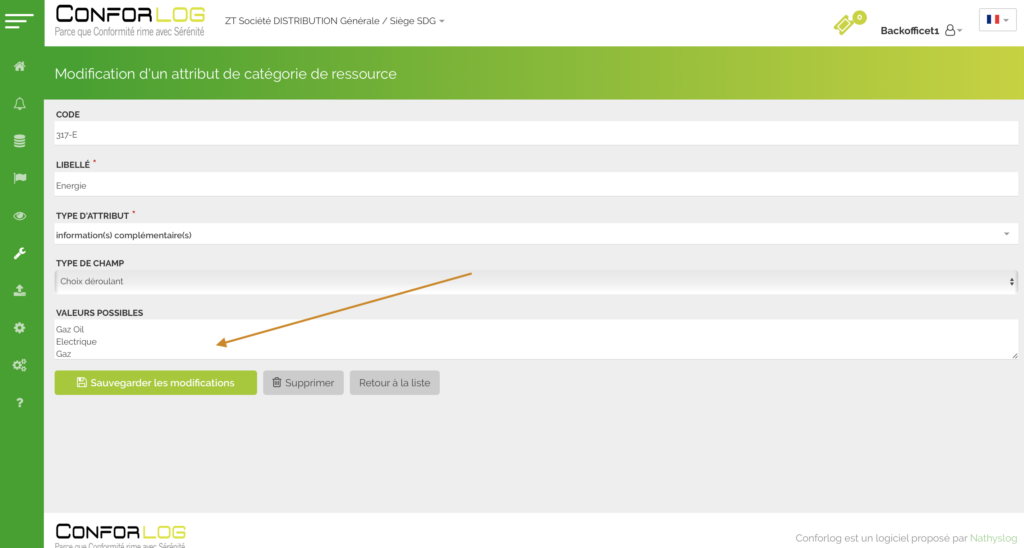 Complétez les informations complémentaires si nécessaire (propre à chaque client =>correspond à : Attributs: information complémentaire ) Flèche VERTE