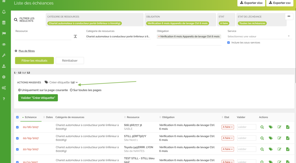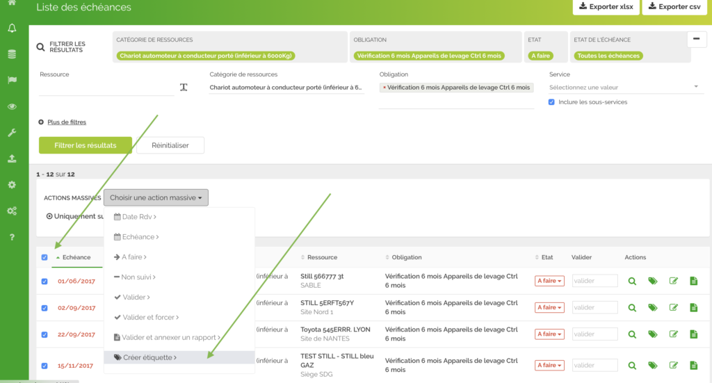 Saisissez vos filtres souhaités / Filtrez puis exportez via Excel Flèche BLEUE