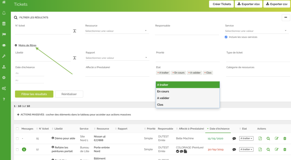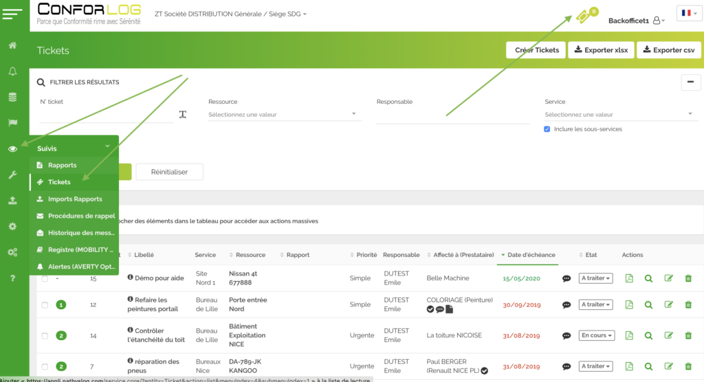 Définition : Un ticket est une tâche qui peut être liée à une ressource ou non, mais en tout cas toujours liée à un responsable interne ( USER) avec une échéance. Le ticket peut être affecté en plus à un prestataire externe.