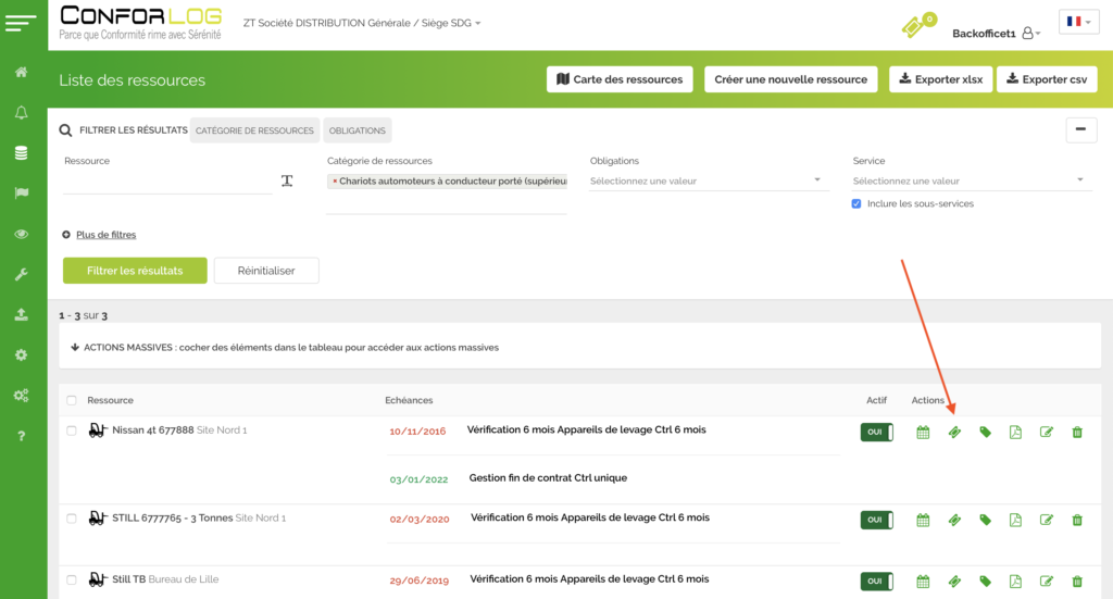 Pour créer un ticket à partir d’une ressource, cliquez sur l’icône => TICKET